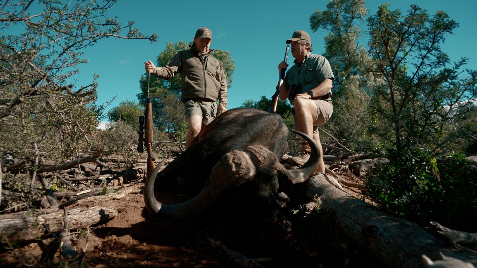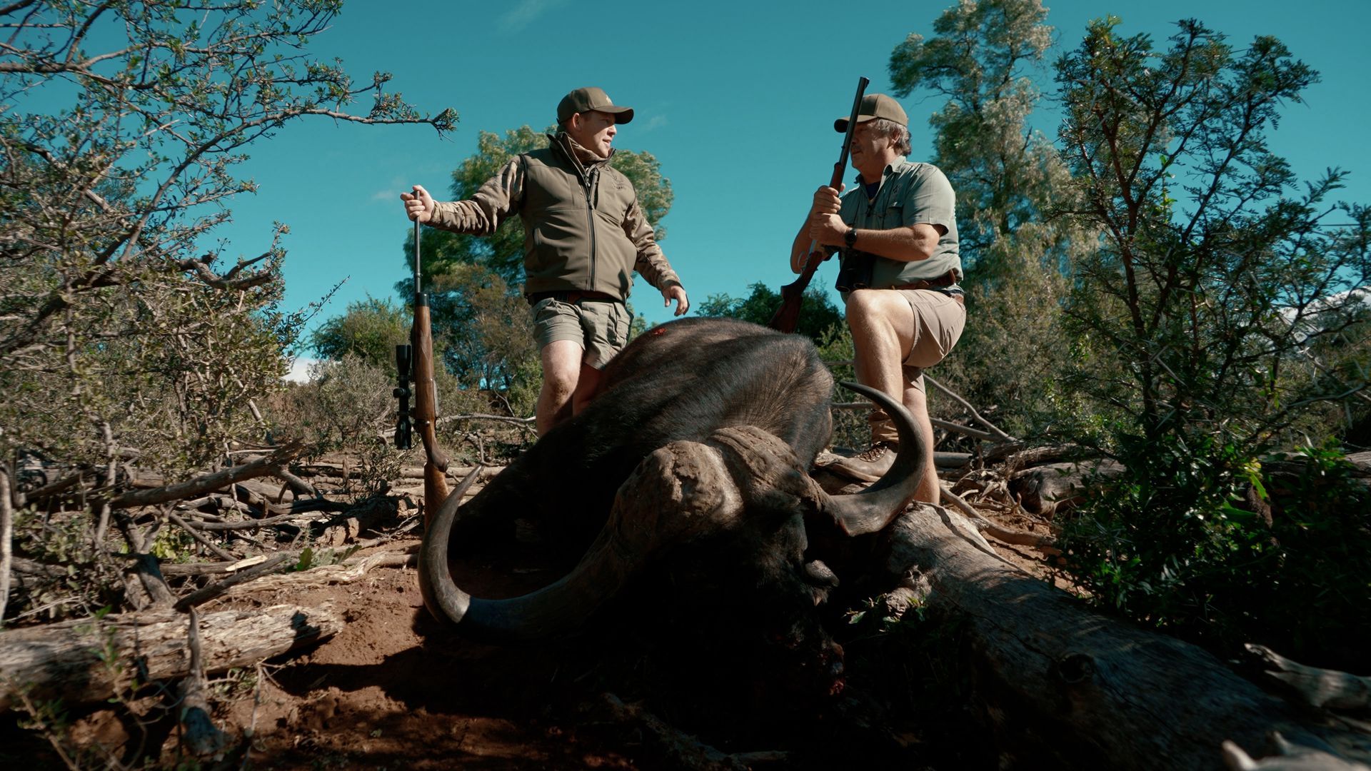 Chapo Gringo finds himself in a high-stakes gunfight with a gnarly old dagga boy and narrowly escapes a heart-pounding charge. Undeterred, he pushes deeper into South Africa’s toughest terrain, continuing the relentless hunt for Cape buffalo.